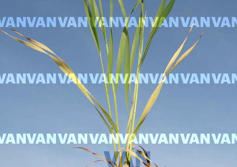 Close up of wheat plants showing N deficiency - younger leaves yellowing